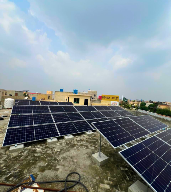30kW on-grid solar system installation for Ahmad Cash & Carry Wapda Town, ensuring efficient energy, cost savings, and sustainable operations.